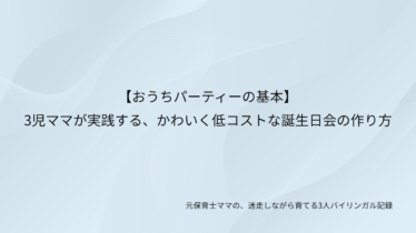 おうちパーティー・イベント 【おうちパーティーの基本】3児ママが実践する、かわいく低コストな誕生日会の作り方 アメリカ駐在経験のある3児ママが、子どもが喜ぶおうち誕生日パーティーの基本ステップをまとめました。テーマの決め方、色選びのコツ、年齢別アクティビティ、プチギフトやケーキ準備のポイントなどを、無理なく・かわいく・低コストで楽しむコツと一緒に紹介します。 2025.11.12 おうちパーティー・イベントパーティー